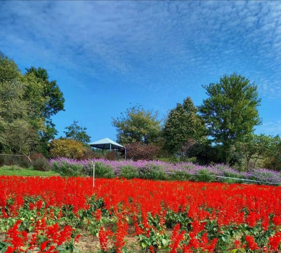 「道の駅 南きよさと」敷地内からリフトカーに乗り、約3.5分で到着する自然公園。東京ドーム1.5個分の敷地にお花畑や菜園、体験施設などが点在する。夏野菜の収穫や果物狩り、週末には石窯でピザ焼きや押し花作り体験も実施。