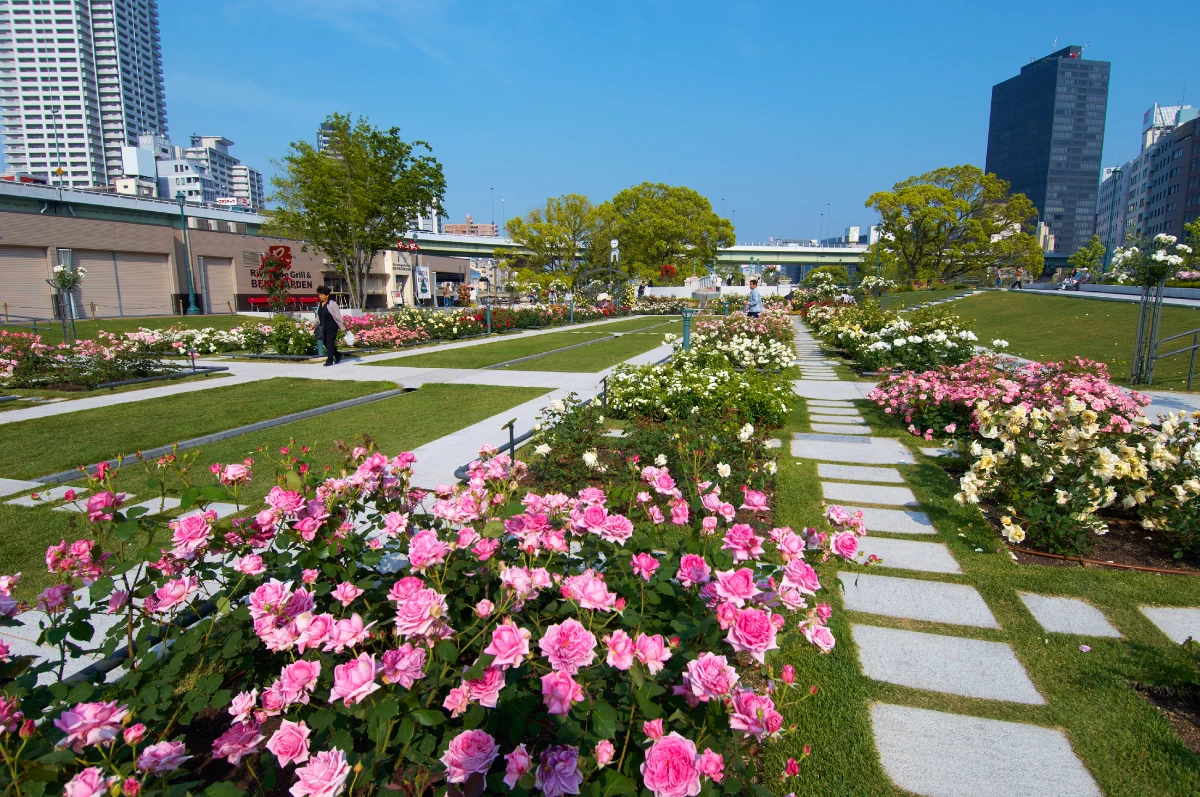 - ★ バラの見頃を迎える5月と10月は公園一帯にバラが咲き誇り、一気に華やぎますよ。バラ園から中央公会堂まで続く川沿いの「バラの小径」は、爽やかな水辺の散歩が楽しめるのでおすすめ。時期を合わせて訪れてみてもいいですね
