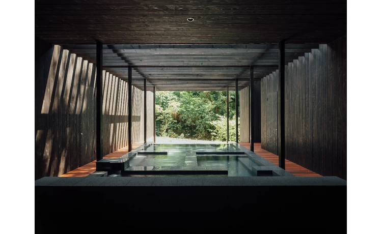 湯河原の緑豊かな自然の中にあるリトリート施設。モダンな造りの館内では、ダイニングで季節の料理を楽しんだり、源泉かけ流しの露天風呂に入ったり、蔵書1,000冊の中からセレクトした図書をコーヒー片手に読んだりと、ゆっくりと過ごすことができる。