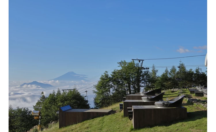 - ★ 標高1,900mの山頂にある、眺望抜群の自然テラス。「サンメドウズ清里」からリフトで10分間の空中散歩を楽しんだ後、山頂で自由に座れるソファーでくつろぎながら、富士山が織りなす美しいパノラマ絶景を楽しめます。大きく深呼吸して、澄んだ空気を味わってみて