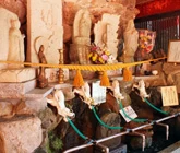 - ★ 参道から108段の石段を下った谷間に薬師如来堂があり、そこに祀られた薬師如来像奥から湧き出ています。薬師如来にお備えしてから持ち帰りましょう。下った階段は登ります! 水を持って上りたくないという方は、石段の上まで運んでくれる有料サービスがあるので使ってみて