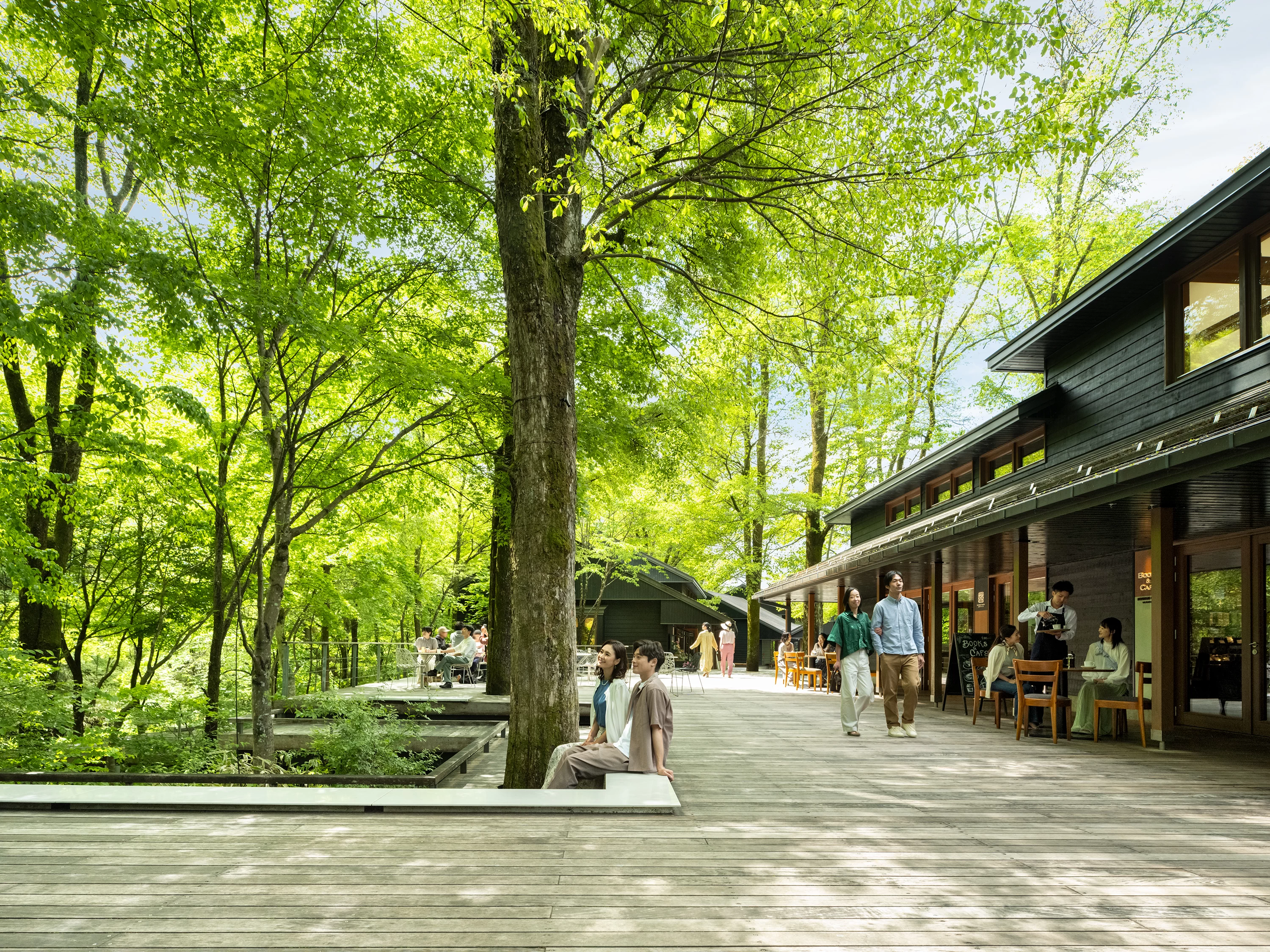 - ★ 軽井沢らしいおしゃれな雰囲気と自然が融合した人気の場所がこちら。ウッドデッキにはショップやレストランが建ち並び、さながら「小さな街」のような雰囲気です。お土産選びにもぴったり