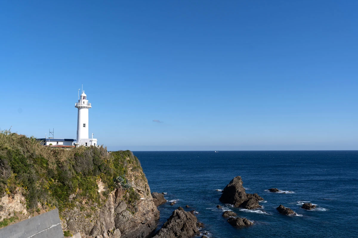 - ★ 崖の上に建つ灯台と聞くだけで、なんだかロマンチックな響きですよね。こちらは、大王埼の岸壁に佇んでいる白亜の灯台で、2019年には「恋する灯台」に認定された、恋人たちの聖地でもあるんですよ