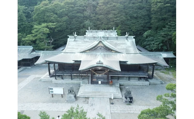 - ★ 正面から見ても横から見ても、ゆるやかに曲線を描いて重なる堂々とした屋根の造りが見事です。函館山の緑を背景に、神々しい「気」を感じてみて