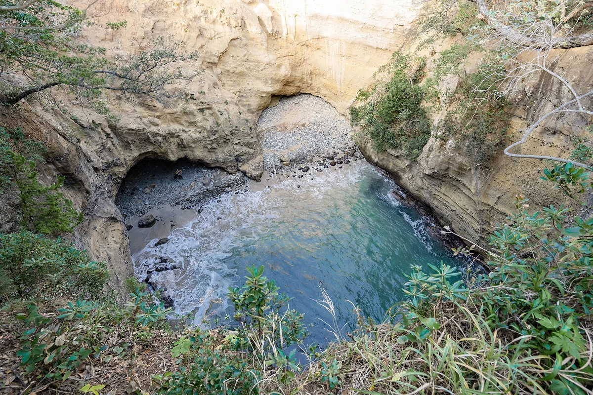 - ★ 階段で洞窟の中に下りると、上部に直径50メートルもの天窓が空いており、そこから光が差し込みます。洞窟の上を通る遊歩道から見下ろせば、岩に隠れたビーチがハート型に見えることから、“恋のパワースポット”として人気を集めています
