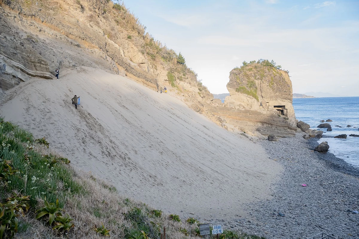 - ★ 「龍宮窟」の後は、すぐ隣にあるアクティビティスポットへ。傾斜が30度もあり、見た目よりもスリル満点です。ソリはサンドスキー場の近くにある民宿などで、1日200円程度で借りることができます