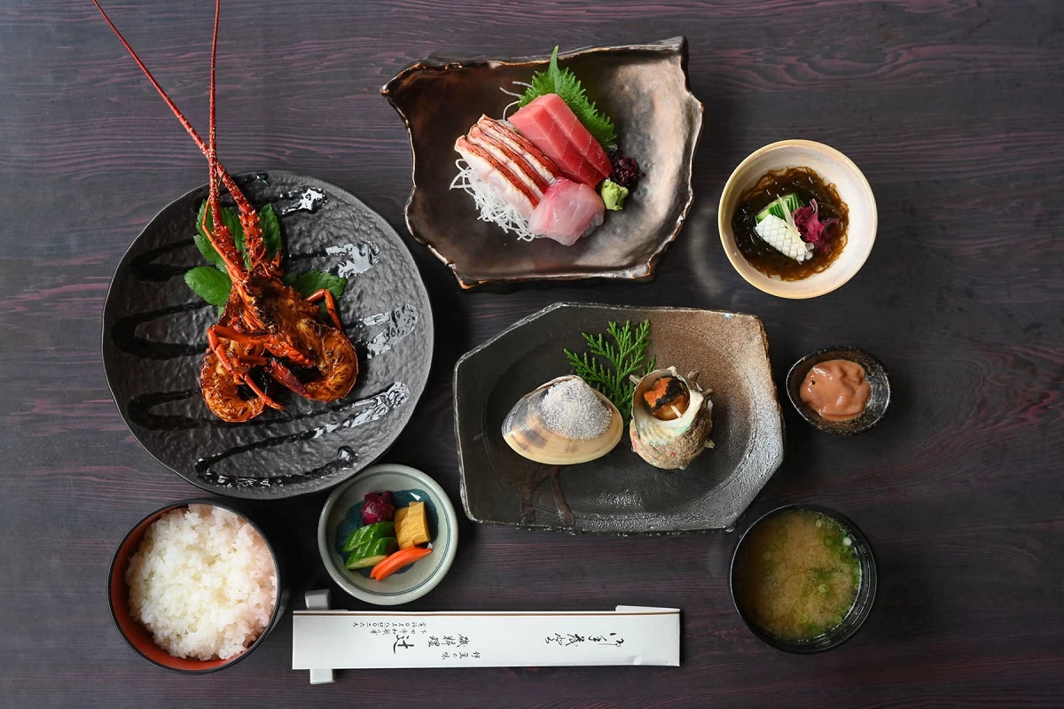 - ★ ランチは元海産物卸問屋が営む食事処で。伊勢海老の鬼殻焼きのほかにサザエのつぼ焼き、焼きハマグリ、お刺身などが付いた豪華な御膳がおすすめです