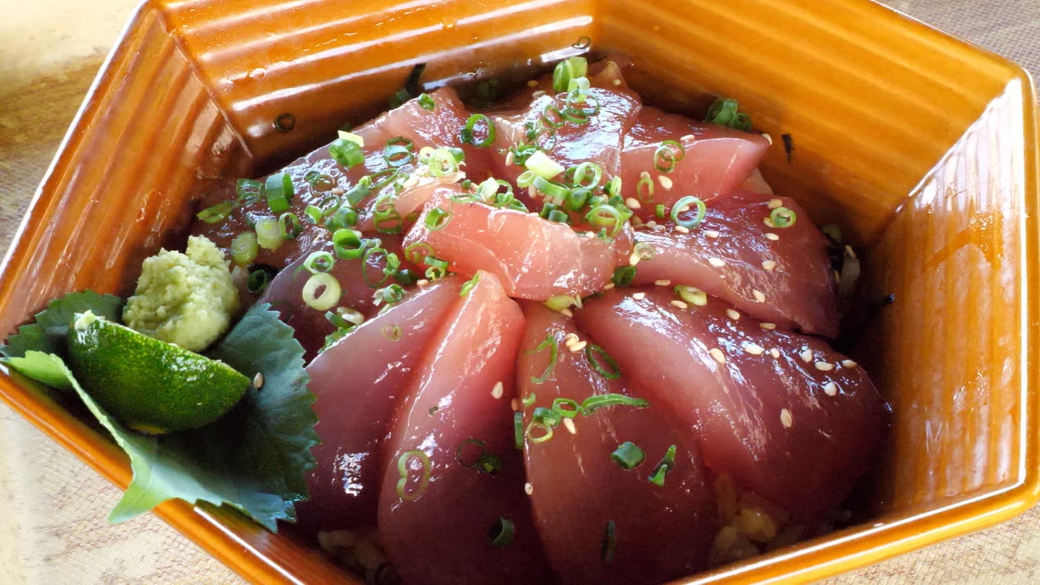 - ★ そんな生マグロを漬け丼でいただきます。たっぷりのマグロにシークヮーサーを絞るスタイル(季節限定)。シークヮーサーが良いアクセントになっていて、あっという間に完食できちゃいます