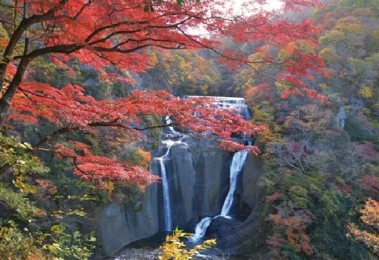 高さ120m、幅73mの大きさを誇り、4段に流れ落ちることから「四度の滝」ともいわれる。季節ごとの表情は、西行法師が四季ごとに来て見なければ本当の良さが分からないと絶賛したほど。