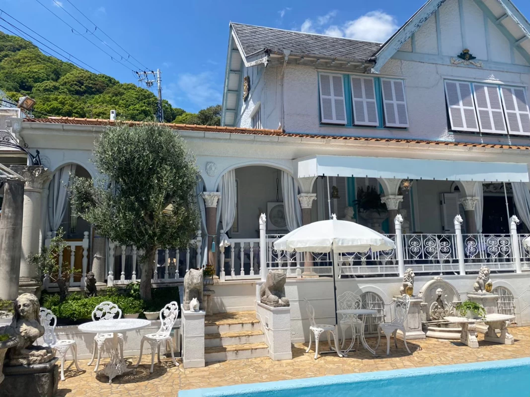 明治後期に建築されたコロニアル様式の洋館。館内は、バロックやビクトリア王朝時代のアンティーク家具・調度品が配され、優雅な雰囲気が漂う。散策におすすめのイングリッシュガーデンには、「告白の木」と呼ばれる樹齢100年の銀杏の木も。
