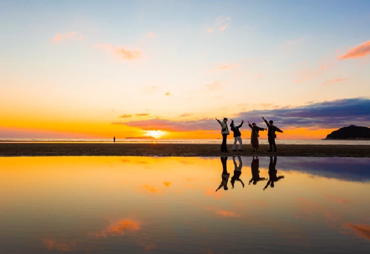 - ★ 南米のウユニ塩湖のような美しい水鏡が見られると近年SNSで話題になり、撮影スポットとしても人気の海水浴場です。日によって干潮時刻が違うので、事前に調べておきましょう