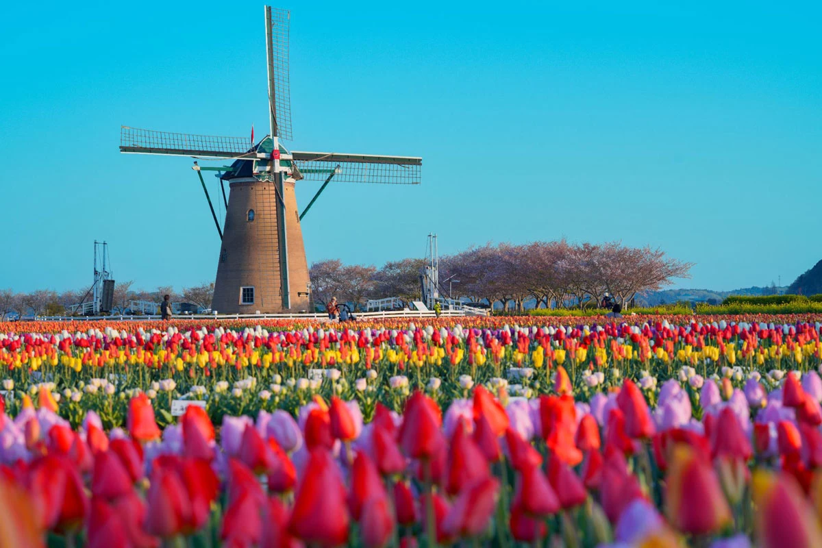 - ★ シンボルとなっている風車は、1994年にオランダ人の技師によって建設されたもの。そんな本場のオランダ風車を背景に、約100種類72万株のチューリップが咲き誇る様は圧巻です!