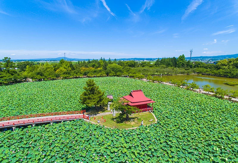 - ★ 蓮の花の群生地としても広く知られ、春になると桜の花が美しく、写真スポットとしても人気があります。金運や出世運アップのご利益が期待できる神社です