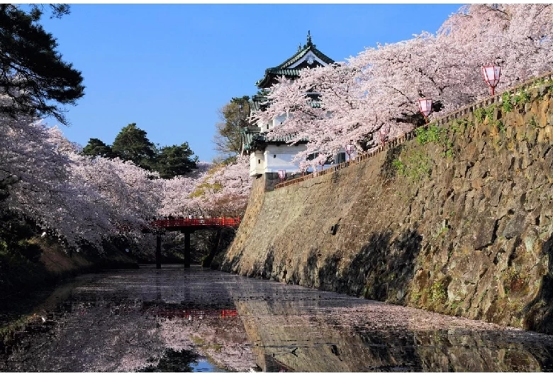 - ★ 東北の名城として名を馳せた弘前城。1627年の落雷により天守を持たない状態が続きましたが、1810年に幕府より蝦夷地(現在の北海道)警備の功績により石高が昇格し、九代目藩主・津軽寧親が本丸にあった辰巳櫓を改築するに至りました。これこそが東北地方に唯一現存する弘前城の天守です。ゆっくりと散策をお楽しみください