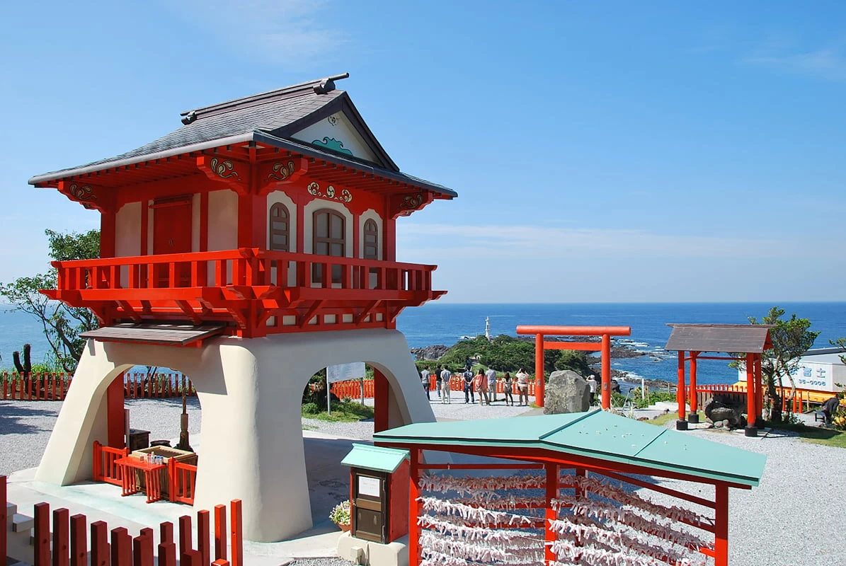 - ★ 竜宮伝説発祥の地で乙姫様を祀った神社がこちら。海越しに眺める開聞岳の山容が美しく、天気が良い日は屋久島や硫黄島まで見られることも! 絶景も一緒にお楽しみください