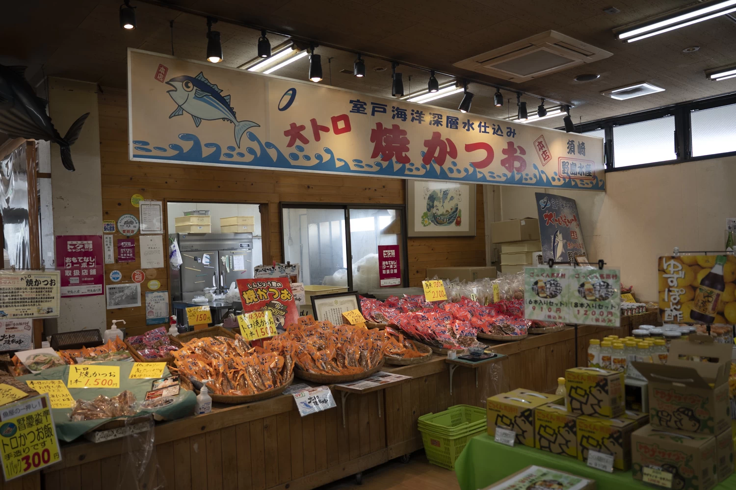 - ★ 道の駅内で最も注目は、高知名物のカツオ。水産コーナーには真空パックの焼きカツオや角煮などがずらりと並び、「多田水産」では本格的なカツオの藁焼き体験が可能。その場で焼きたてのタタキを食べられるのが特徴です