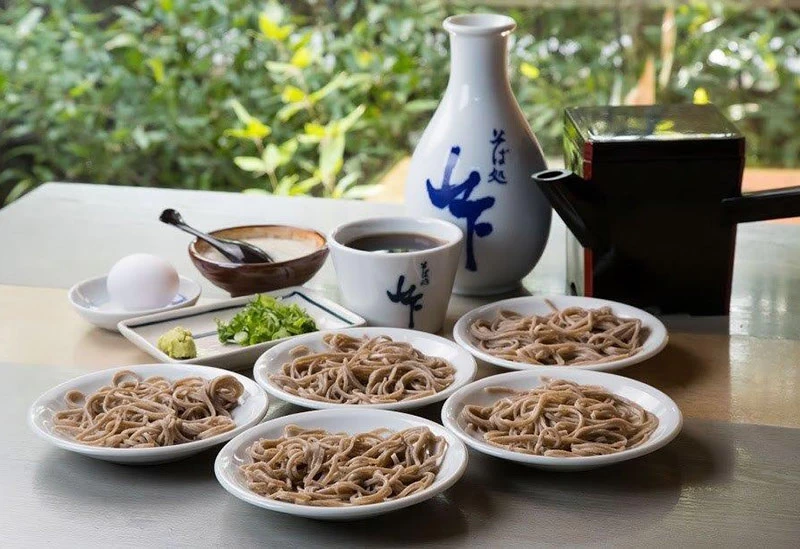 - ★ 出石焼の小皿に盛りつけた皿そばを、何枚も食べる独特の様式を持つ「出石皿そば」。5枚一組を一人前として提供しています。厳選した国産玄そばを石挽きしたそば粉を使用した、香り豊かな出石皿そばをご堪能あれ