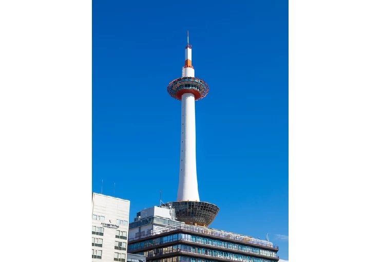 京都駅前に建つ高さ131mのタワーは灯台をイメージして建てられたもの。地上100mの展望室からは360度眺望が楽しめ、市街全体が見渡せる。ビル内にはホテルやレストラン、土産物売り場がある。
