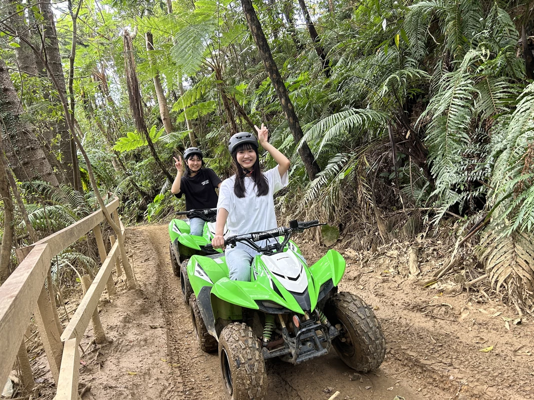 四輪バギーに乗ってやんばるの大自然を気持ちよく走るヤンバルンチャー名護店の“ジャングルバギー”が体験できる。体験にはガイドがついており、森の魅力についても教えてもらえる。大人から子どもまで楽しめる人気アクティビティ。