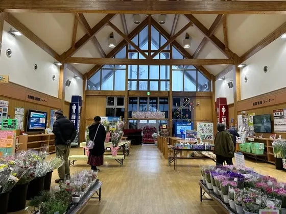 - ★ 秋田県内で採れる季節の野菜・果物や、県を代表する名産品「いぶりがっこ」などの加工品が揃う販売所をはじめ、地酒やお土産のコーナーも充実しています