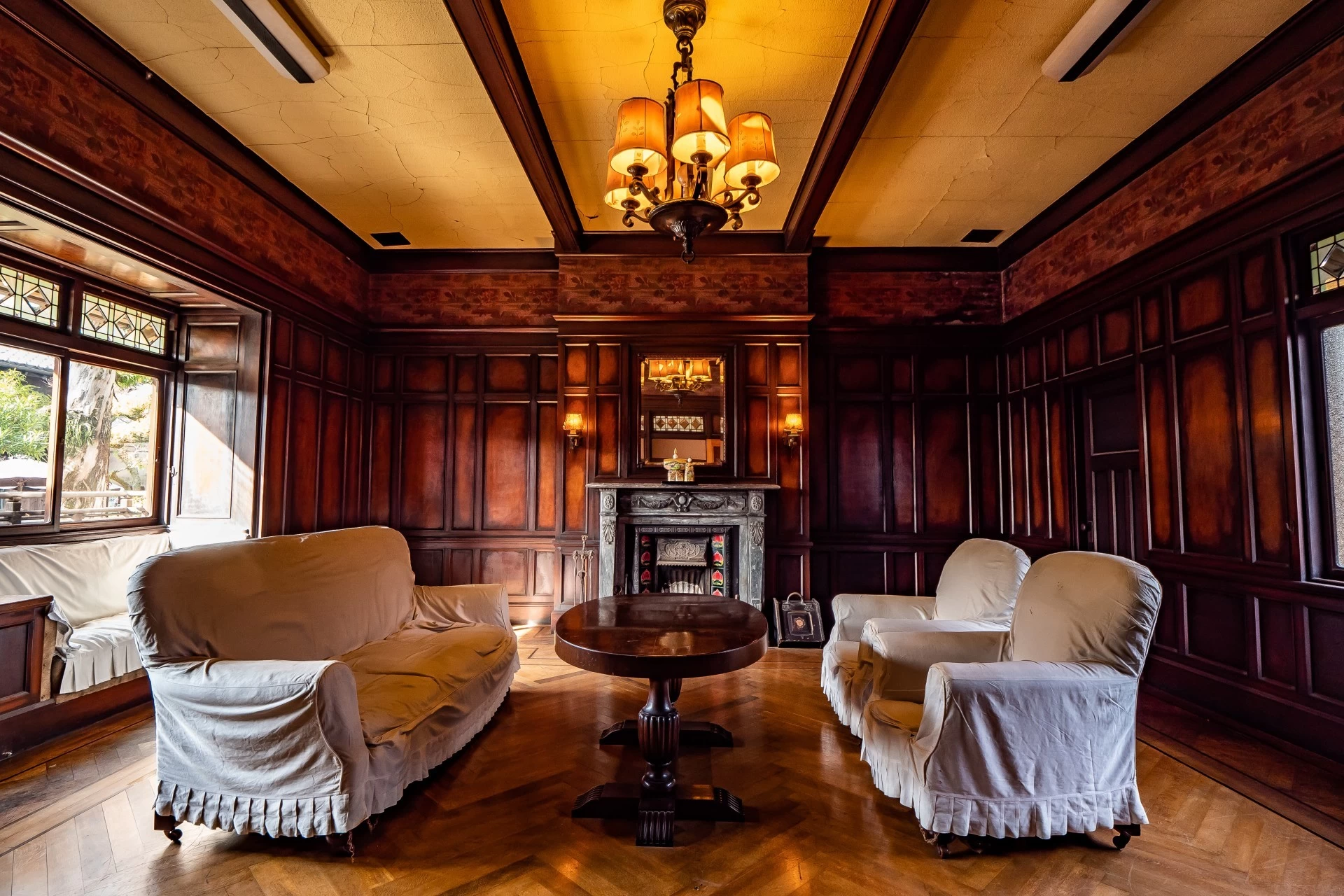 旧伊藤伝右衛門邸は、筑豊の炭鉱王と呼ばれた伊藤伝右衛門と歌人柳原白蓮(やなぎわらびゃくれん)が過ごした邸宅。アールヌーヴォー調のマントルピース、イギリス製のひし形のステンドグラスがある応接間、一畳たたみを敷き詰めた長い廊下など、さまざまな芸術的技法を取り入れ、伊藤伝右衛門が妻・白蓮のためにと改築を続けた歴史的建造物。