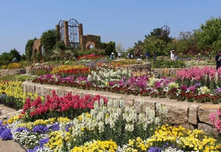 約300万平方メートルの広大な敷地を誇る公園。巨大トランポリン、動物の森、バラ園など多彩な施設があり、一日中遊べる。春と秋には広大な花畑が登場し、家族連れでにぎわう。