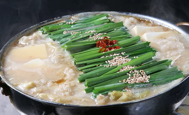 - ★ 博多に来たら欠かせないのが、もつ鍋! こちらでは、白味噌仕立ての濃厚なもつ鍋を堪能できます。たっぷりのニラが添えられ、国産黒毛和牛を使用した大ぶりなモツと、濃厚な味噌が人気の秘密。見た目の上品さはもちろん、味も絶品です
