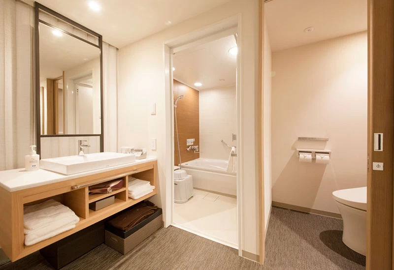 天神駅より徒歩約5分の好立地にあり、福岡県の観光やビジネスにも人気のホテル。フラットなユニバーサルタイプの客室を完備し、車椅子利用者をはじめ、小さな子どもがいる家族でも安心して利用できる。美容に特化した1日2室限定の「リファルーム」も人気。