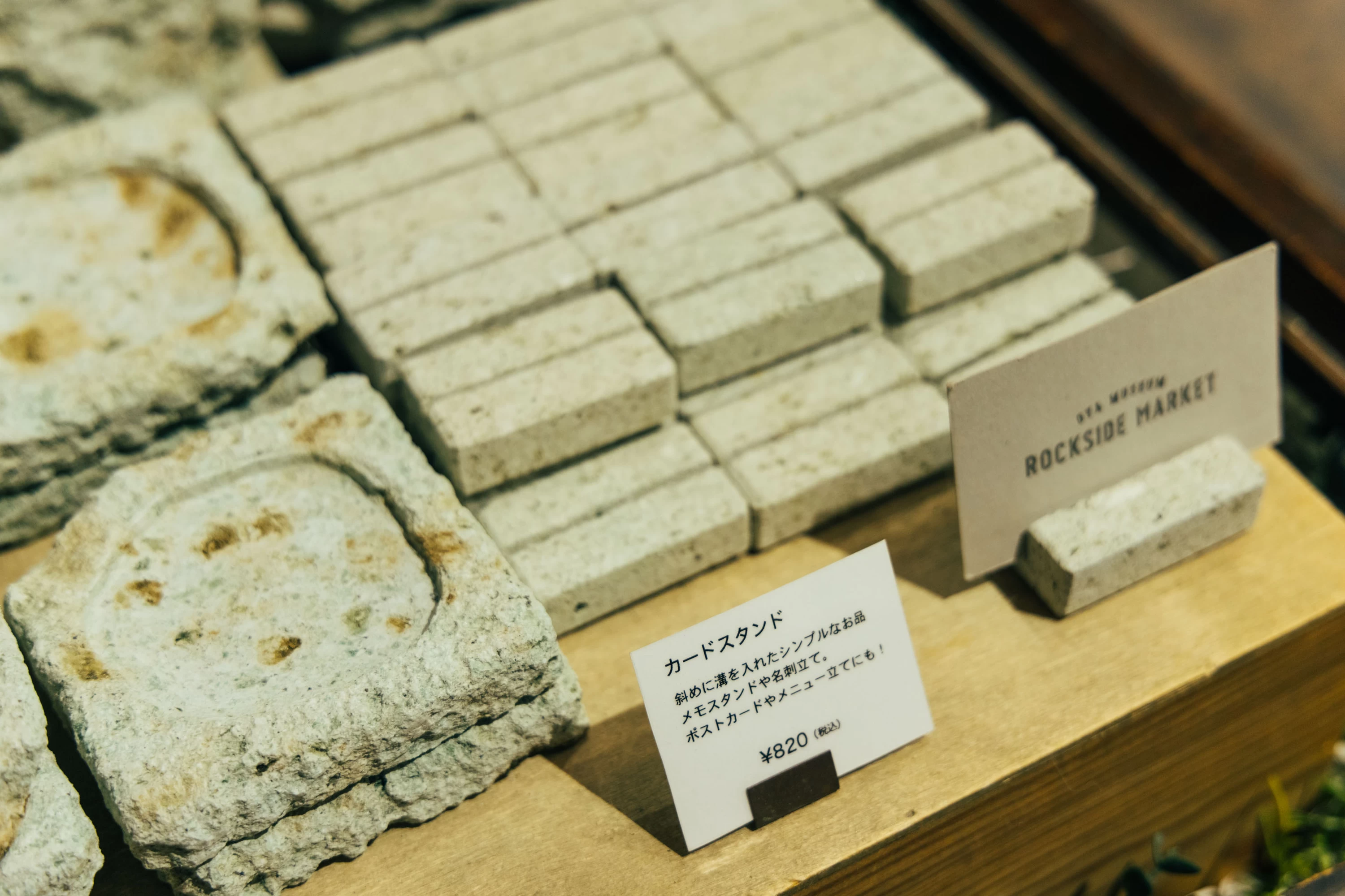 - ★ 旅の終わりに訪れたのは、大谷資料館に隣接するROCKSIDE MARKET。注目は大谷石を使ったアイテム。一輪挿しや鉢カバーといったボタニカルグッズから、大谷石の吸水性と耐熱性を活用したオリジナルコースターなどなど、バリエーションに目移りしそう!