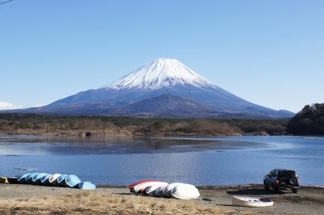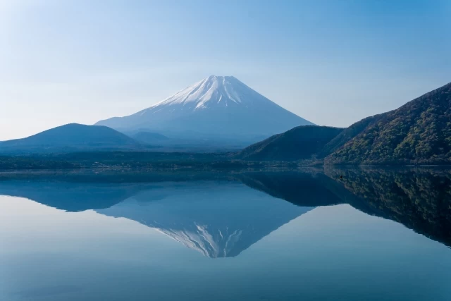 - ★ 富士五湖の中で最も小さな「精進湖」。ここから望む富士山は、手前にある小さな山が子供のように見えることから「子抱き富士」と呼ばれ、一味違った富士山を撮影できるスポットです