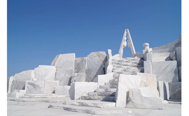 「未来心の丘」は、通称“母の寺”として知られる浄土真宗の寺院「耕三寺」の敷地内に点在するスポットのひとつ。5,000平方メートルに及ぶ大理石の庭園で、まるで地中海のようなフォトジェニックな雰囲気を味わいながら園内の散策を楽しめる。休憩にぴったりなカフェも併設。