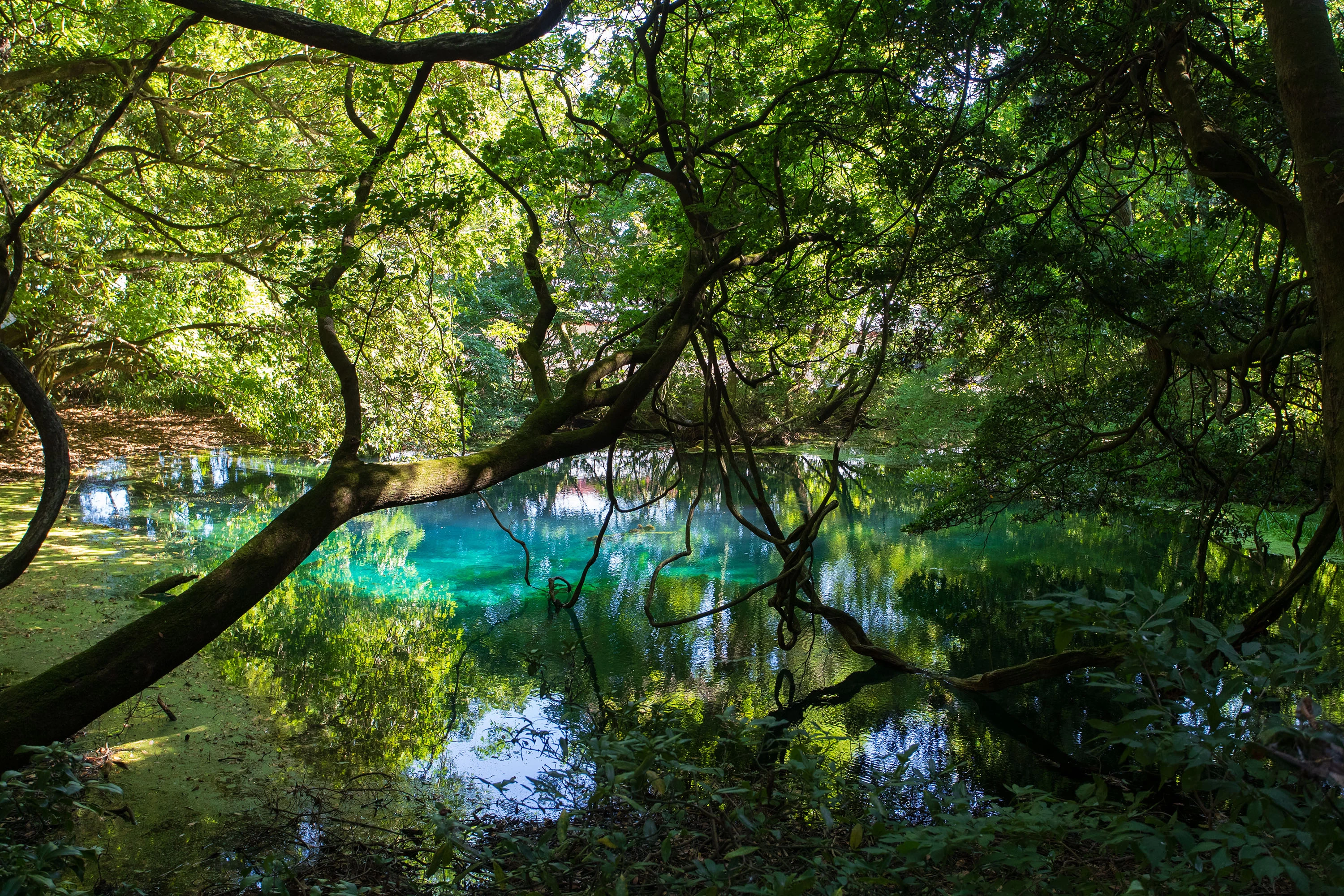 - ★ 池の直径は20m、水深3.50m。湧き水だけで満たされており、水の色は幻想的なエメラルドグリーン。光の加減により微妙に色が変わっていく光景は神々しく、うっとりする美しさです