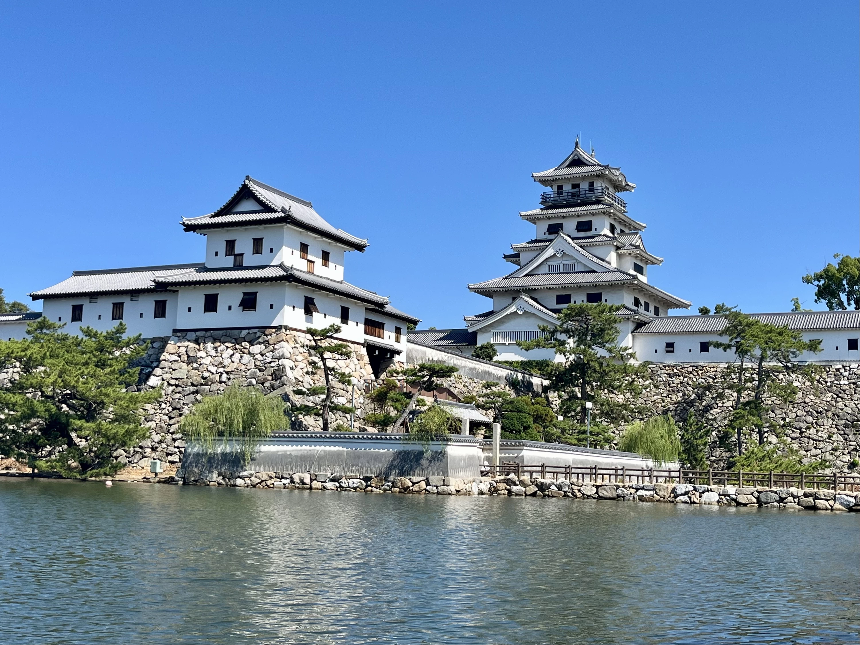 - ★ 1980年以降、模擬天守(史実に基づかない天守)をはじめ、櫓や門、城壁などの再建が進められました。ほぼ江戸時代の姿を残している石垣と内堀、再建された建造物により、現在の今治城は壮麗で美しい雄大な城郭の姿を見せています