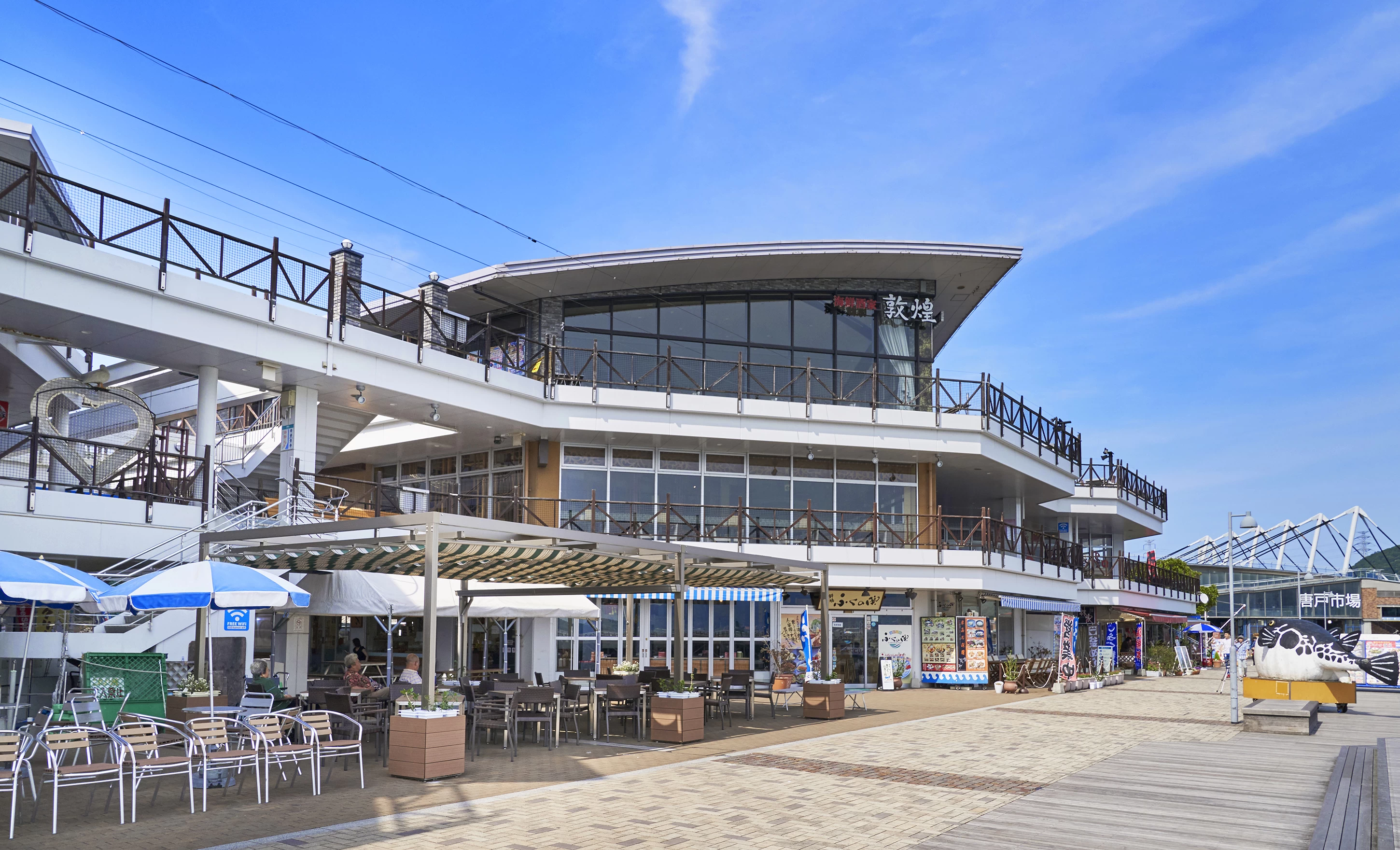 - ★ 旅の最後は、関門自慢の海の幸を中心としたレストランや土産物店が立ち並ぶシーサイドモールへ。レストランやお土産が立ち並ぶショップ以外にも、関門海峡が一望できるボードウォークにも足を運んでみましょう