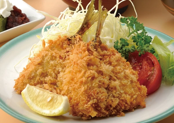 - ★ 看板メニューは水槽からあげてすぐに調理する、活きアジ料理。サクサクふわふわ食感の看板メニュー「活きあじフライ」はまさに絶品! 注文に迷った際はぜひ頼んでみて