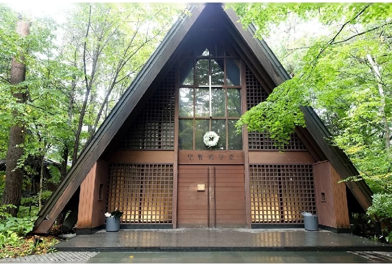 - ★ 切り立った三角のデザインが印象的な、大正10年に開かれた「芸術自由教育講習会」を原点にして生まれた教会です。講習会にはキリスト教思想家・内村鑑三をはじめ、北原白秋や島崎藤村といった文化人が集い、芸術や教育について熱心な討論が繰り広げられたとされています