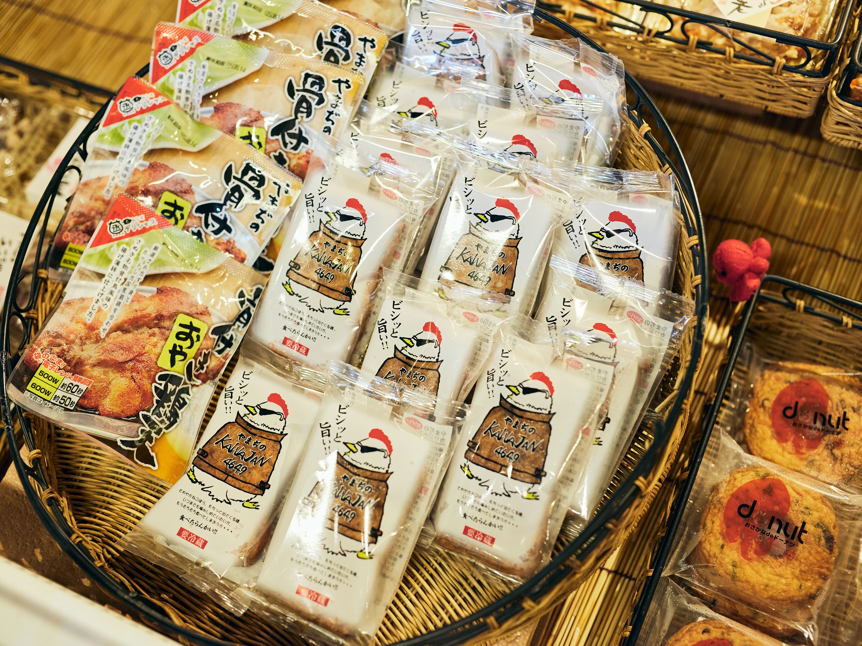 - ★ 職人が手仕事で仕上げる手練りシリーズや季節感のある食材を組み合わせたもののほか、土曜日に数量限定で販売される「エビッシュ」や、「おさかなDEワッフル」、ドーナツ型の蒲鉾などのオリジナル蒲鉾も続々登場。まち歩きのお供にもおすすめです