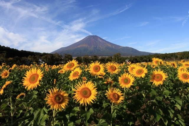 - ★ 富士山と花畑を一度に楽しめる人気の撮影スポット。富士山を背景に、春にはポピーやチューリップ、夏にはひまわり、秋にかけてコスモスなど四季折々の花が咲き競う景色が楽しめますよ。思わず写真に収めたくなる美しさのため、写真好きの方はカメラをお忘れなく!