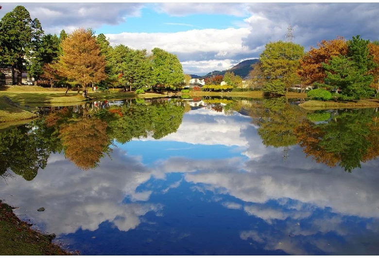 - ★ ほぼ完全な姿で残っている浄土庭園は、平安時代に書かれた日本最古の庭園書「作庭記(さくていき:平安時代に書かれた日本最古の庭園書)」の作法どおりに作られたと考えられています。舞鶴が池を中心に、池の北岸には大阿弥陀堂跡、小阿弥陀堂跡があり、背後の金鶏山と一体となった景観によって、阿弥陀如来の極楽浄土を表現していました