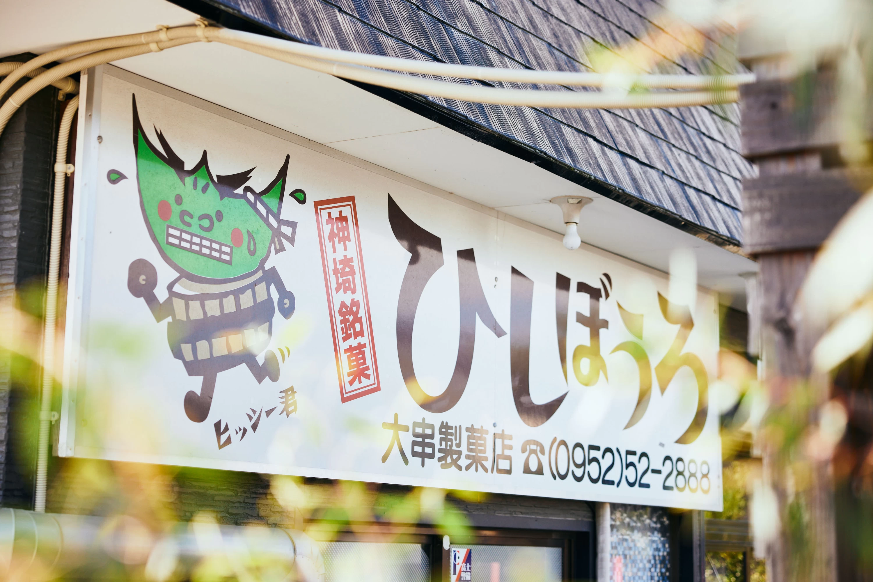 - ★ 名物は三代目となる現店主が開発に携わった「ひしぼうろ」。佐賀の銘菓「丸ぼうろ」を参考に、地元の特産品でポリフェノールが豊富な菱の皮を入れたそう。菱の風味はクセがなく優しい甘さ。小麦粉にうるち米を加えているので、食感はしっとり、もっちりです