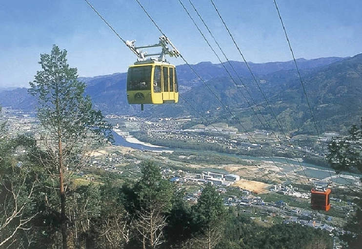 - ★ 登山口から山頂までを結ぶ全長950mのロープウェイで、約4分間の空中散歩を楽しめます。日本初の「フニテル方式」を採用しており、風などの気象条件に強い設計が特徴です