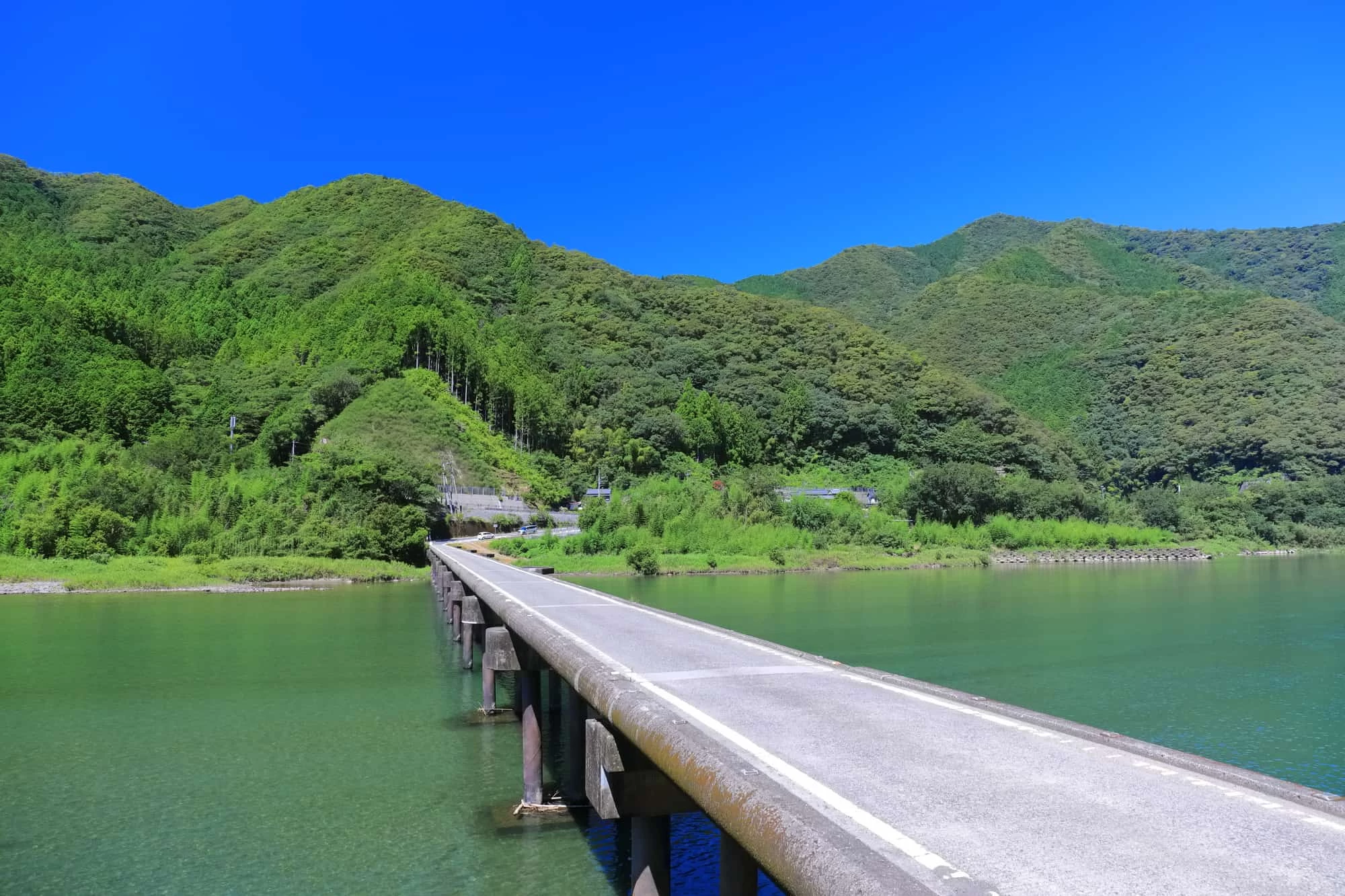 - ★ 「沈下橋」とは、大雨の増水時、流れに逆らわず流木などに抵抗しない造りで、自ら水の中に沈下する事により破壊を避け、自然に寄り添うように設計された橋のこと。そのため橋の欄干などがなくシンプルで景色に溶け込んでいます