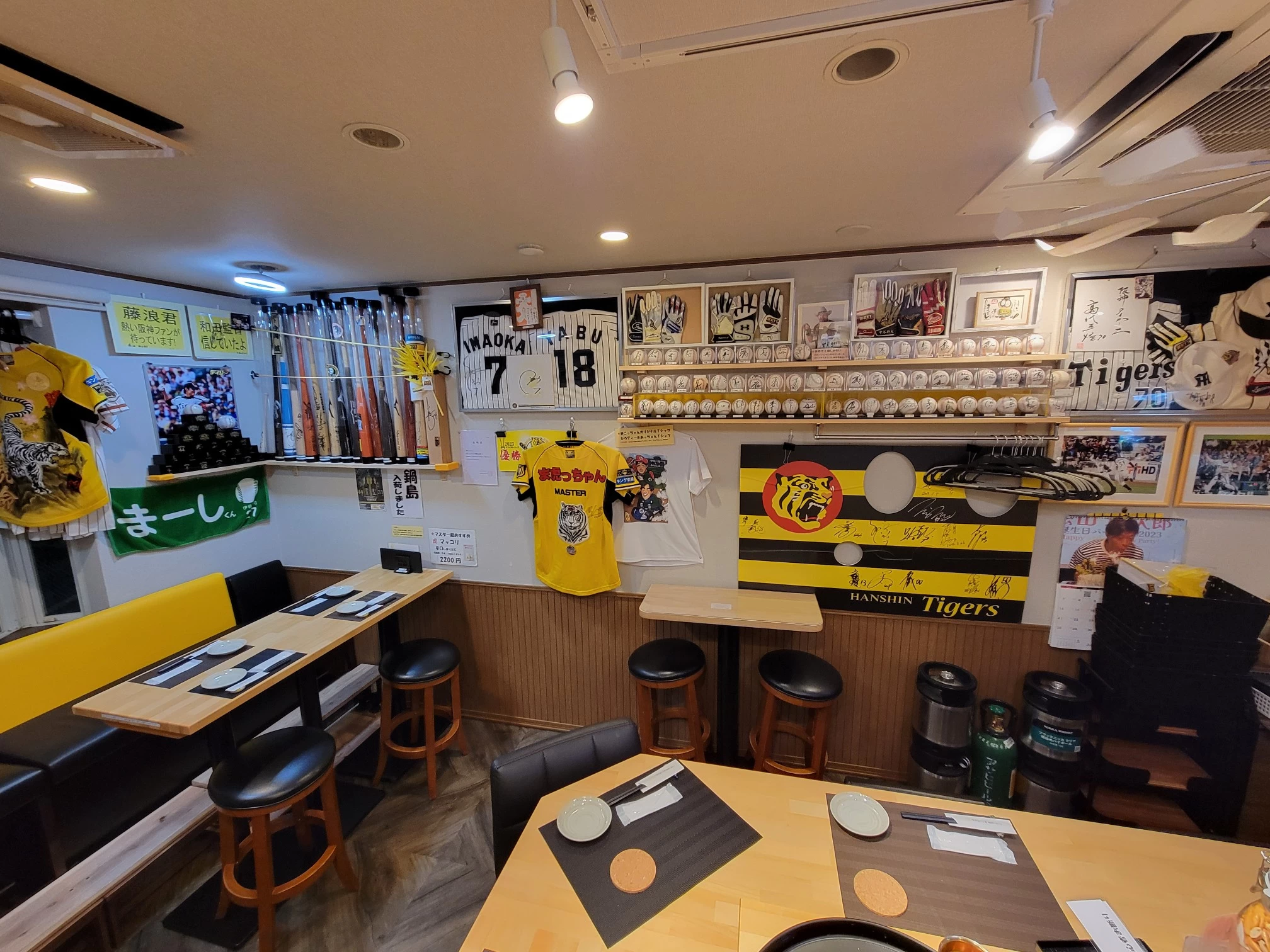 - ★ 店内には、阪神タイガースのグッズやサインがずらりと並び、楽しい空間となっています! トイレなどの細部までグッズが並ぶので、じっくりと見学してみて