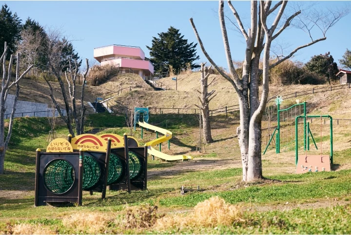 - ★ 2日目のスタートは朝の散歩から。小高い山の傾斜面に沿って遊具が設置され、周辺は豊かな緑に囲まれていることから、住民の憩いの場となっています。春には桜やつつじが見頃を迎え、お花見スポットとしても人気