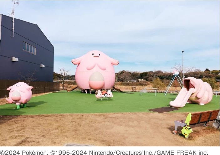 - ★ お腹を満たしたら、道の駅の裏手にある公園でひと休み。公園の中に遊具として出迎えてくれるのは、ふくしま応援ポケモンの「ラッキー」。幸せ(福)を運ぶと言われていることから、ラッキーがモチーフとなる公園が誕生しました