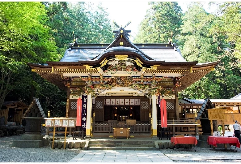 - ★ 秩父市の中央、柞(ははそ)の森に鎮座する秩父神社。秩父地方の総社で、創建は約2000年前といわれています。徳川家康公が寄進したと伝えられる本殿は、鮮やかな色の彫刻が施された豪華な造りが特徴。権現(ごんげん)造りの建築様式で、埼玉県の有形文化財に指定されています