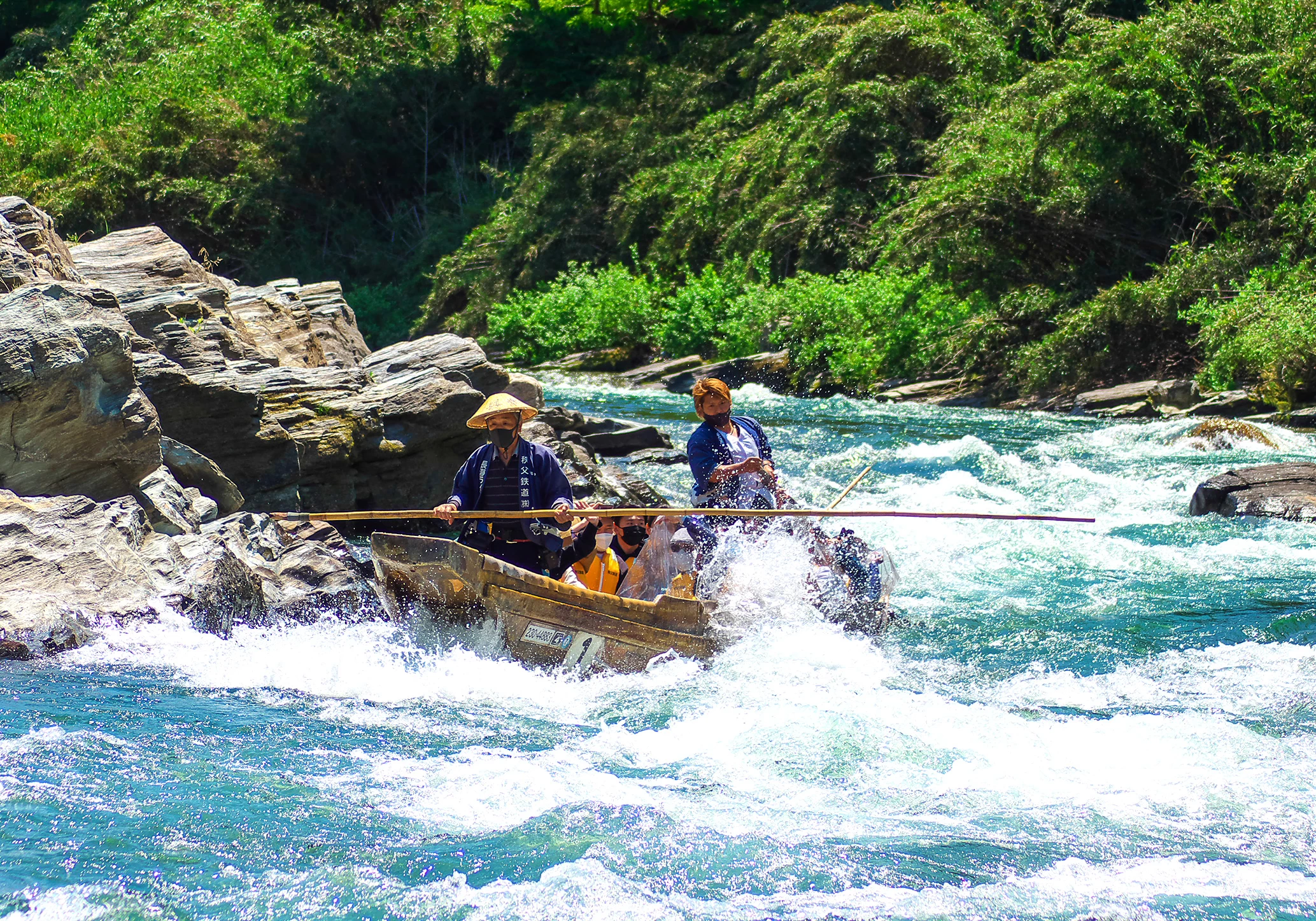 秩父山中の原木をいかだで組んで運んだ「いかだ流し」がルーツ。川の流れの速い「瀬」では水しぶきを上げてスリル満点に、静かな「淵」では奇岩が連なる沿岸の景色を楽しむ、動と静の魅力が同時に楽しめる舟遊び。