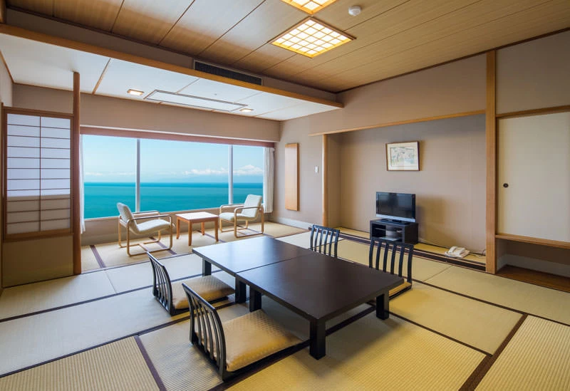 - ★ 客室の高さは海抜80m以上。窓からは海を見下ろす形になり、海の上に浮かんでいるような不思議な感覚が味わえ、すべての客室から駿河湾と富士山を一望できます