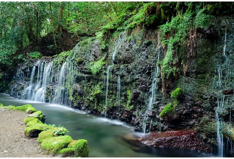 - ★ 「千条の滝」と書いて「ちすじの滝」と読みます。その名の通り、横幅が広く筋状の滝が美しいスポット。千条の滝の近くには駐車場がないので、ホテルからタクシーで往復すると良いでしょう