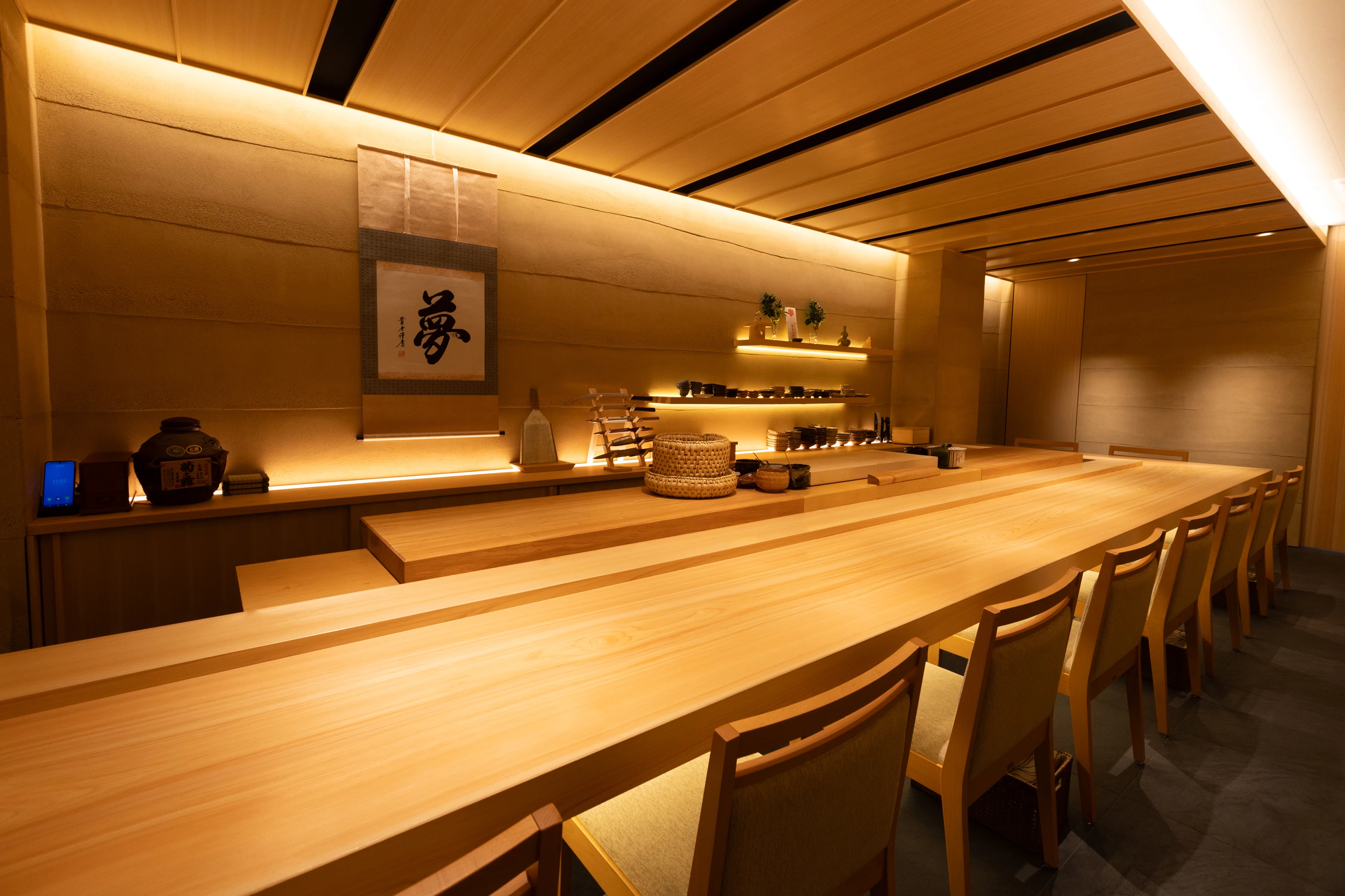 - ★ ほどよい緊張感のなか、伝統的な一枚板のカウンターに座り、大将の手さばきを間近に見ながら一貫ずつ味わう時間は格別です。“お客様に楽しんでもらいたい”という思いから器選びにもこだわり、自ら窯元に足を運ぶそう